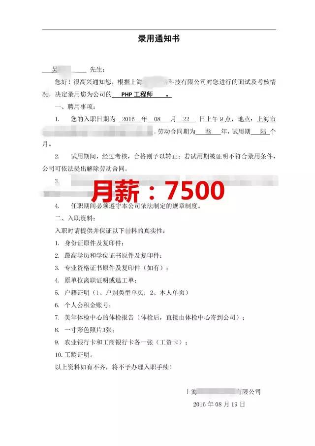 云和毕业后吴童鞋跟就业老师去了上海,他按照老师之前教授的“秘籍”,在求职网站上发了自己的简历并附赠上项目作品,这个办法让他收到了很多面试,最终他以7500元的高薪入职上海**网络科技公司,成为了一名PHP工程师。进入公司不久吴童鞋就被安排进了项目组担任网站开发,不管是工作状态,还是学习内容和工作之间的转化,吴童鞋都慢慢适应了。