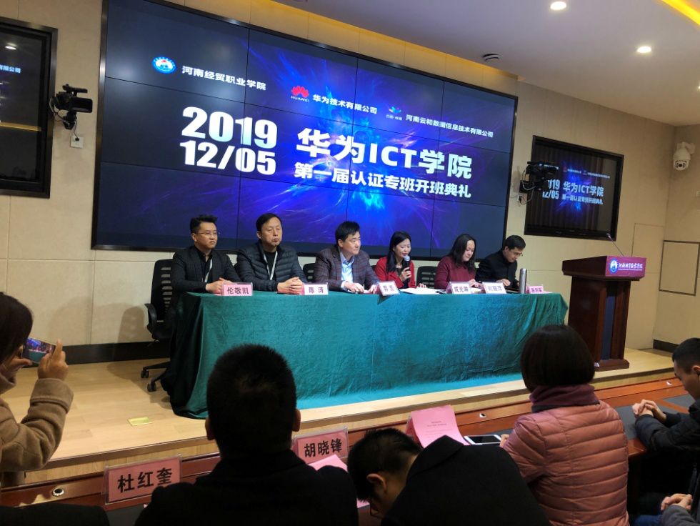 云和数据作为华为官方认证授权培训中心、华为ICT学院授权中心,特成立华为ICT学院运营团队,并与河南经贸职业学院于2018年12月6日正式合作建设华为ICT学院认证专班。