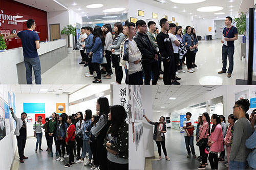由于人数较多,120多名同学们分6组在云和数据院校合作部李经理及工作人员的带领下,对云和数据以及云和数据人才培养合作企业——企汇网、锐之旗进行了参观学习。