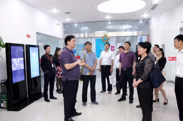 金校长一行和郭主任先随着云和服务团队对云和数据、企汇网、百度进行了参观。来到一楼云和数据的时候,总经理郭总对公司业务模块以及战略合作伙伴进行了详细的介绍。